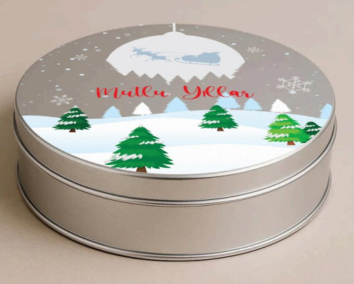 Yılbaşı Temalı Gümüş Yuvarlak Metal Kutu | 432 Adet