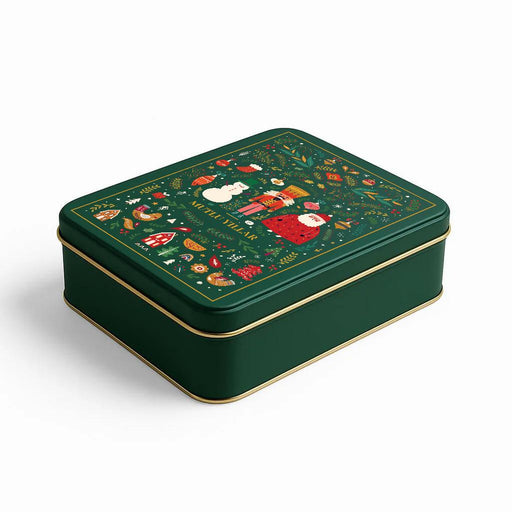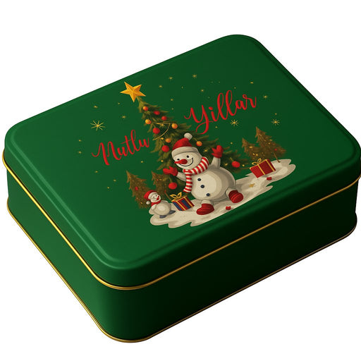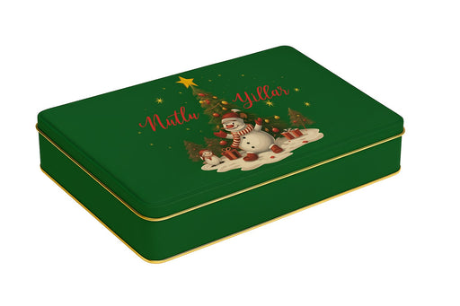 Yılbaşı Temalı Yeşil Mat Dikdörtgen Metal Kutu | 360 Adet