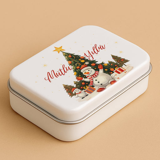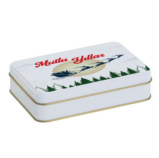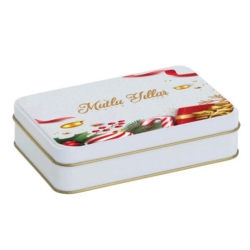 Yılbaşı Temalı Beyaz Menteşeli Dikdörtgen Metal Kutu | 396 Adet