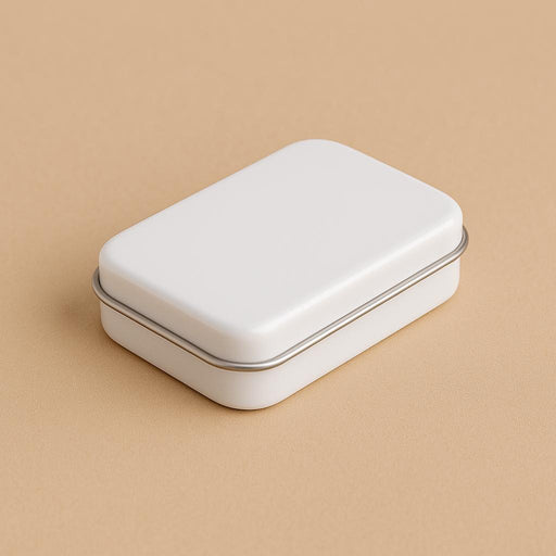 Masaş Metal AmbalajStokta varBoyutlar: 78 mm (uzunluk) 48 mm (genişlik) 15 mm (yükseklik) Renkler: Beyaz Parlak Ambalaj Ham maddesi: Teneke / Metal Kapak Şekli: Ment...