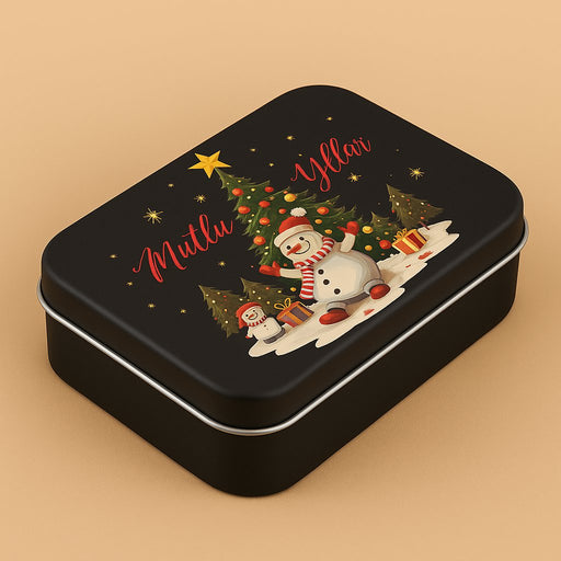 Yılbaşı Temalı Siyah Mat Menteşeli Dikdörtgen Metal Kutu | 396 Adet