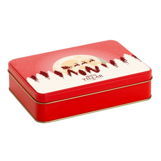 Yılbaşı Temalı Kırmızı Dikdörtgen Metal Kutu | 360 Adet