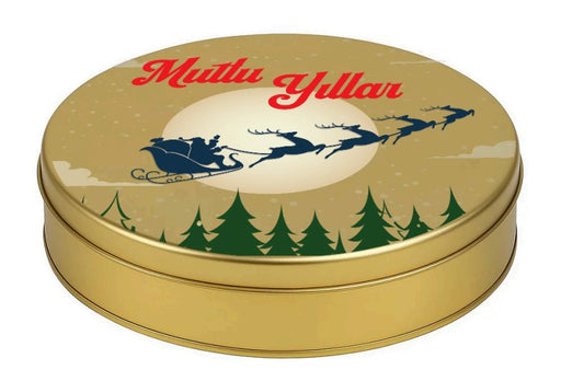 Yılbaşı Temalı Gold Yuvarlak Metal Kutu | 360 Adet