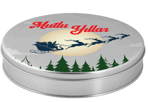 Yılbaşı Temalı Gümüş Yuvarlak Metal Kutu | 360 Adet