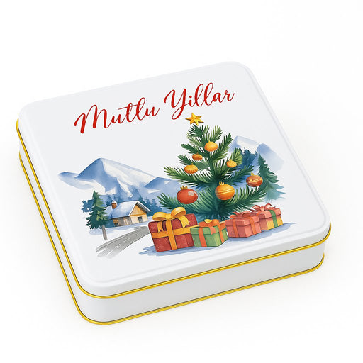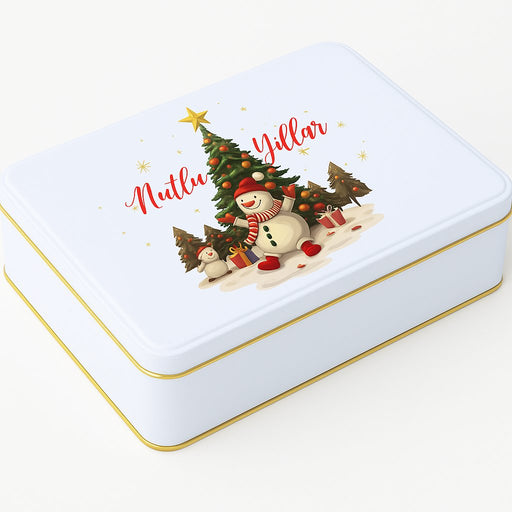 Yılbaşı Temalı Beyaz Dikdörtgen Metal Kutu | 360 Adet