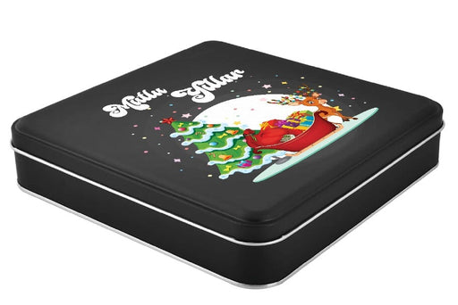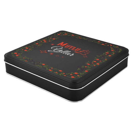 Yılbaşı Temalı Kare Siyah Mat Metal Kutu | 360 Adet