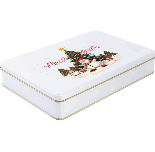 Yılbaşı Temalı Beyaz Dikdörtgen Metal Kutu | 360 Adet