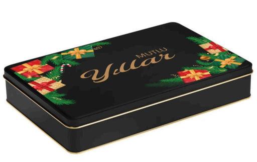 Yılbaşı Temalı Siyah Mat Dikdörtgen Metal Kutu | 360 Adet