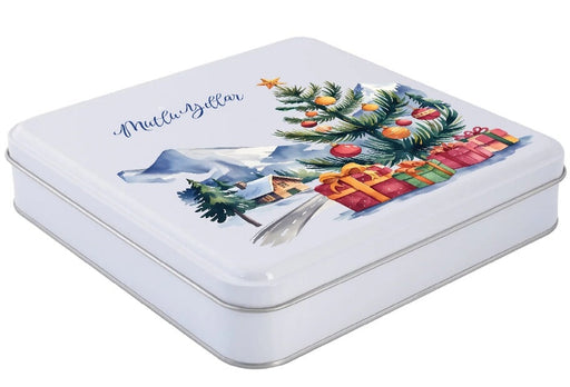 Özelleştirilebilir Baskılı Yılbaşı Temalı Beyaz Kare Metal Kutu | 360 Adet
